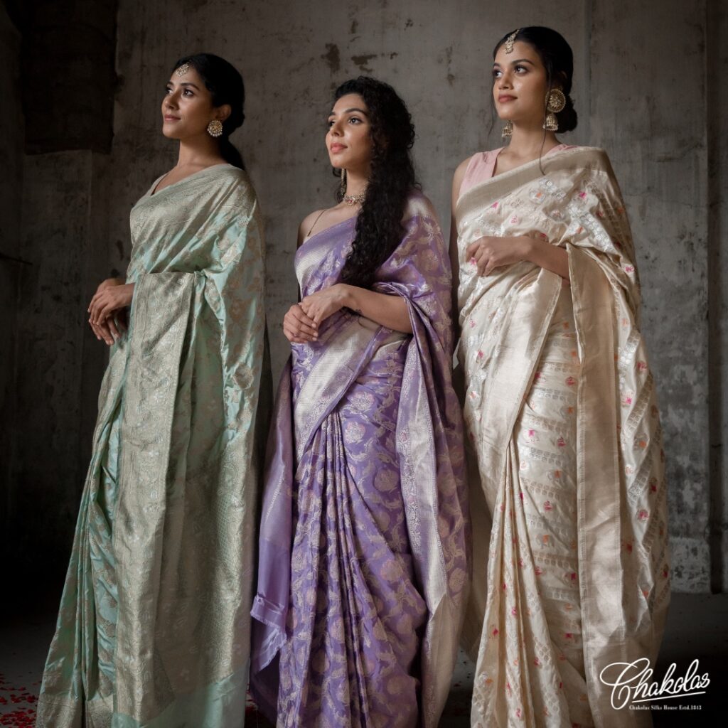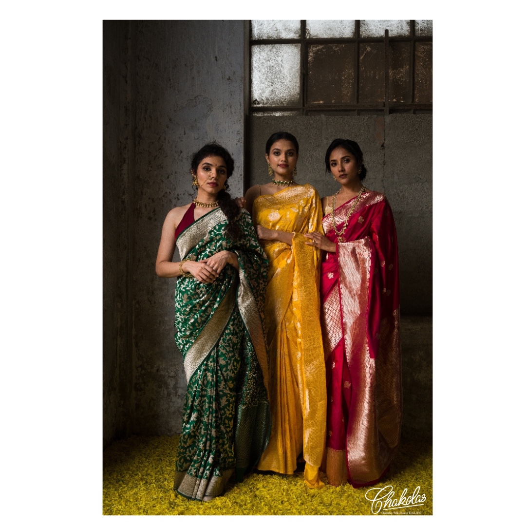Chakola Silk House is renowned for its awesome bride collections, offering a splendid array of exquisite silks and traditional garments perfect for any wedding occasion. With a legacy built on quality products and attentive service, brides can discover a diverse selection of drapes, from opulent Kanjivaram silks to intricate designer pieces, ensuring a memorable and stunning bridal ensemble for their special day.